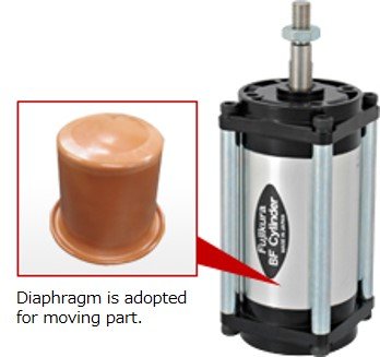 3.Lubrication-Free: No Lubricator required in the air line. Excellent resistance to pressure: Assured by the rolling principle of BF Diaphragms.